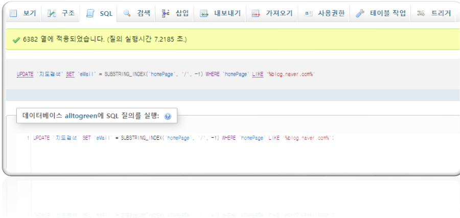 UPDATE `지도검색` SET `eMail` = CONCAT(SUBSTRING_INDEX(`homePage`'/'-1),'@naver.com'WHERE `homePage` LIKE '%blog.naver.com%'